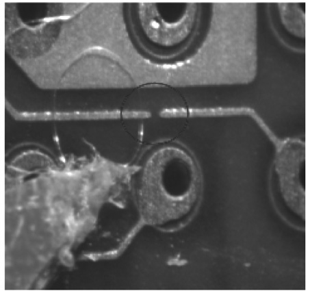 圖5 曝光機(jī)內(nèi)垃圾導(dǎo)致的線條斷線